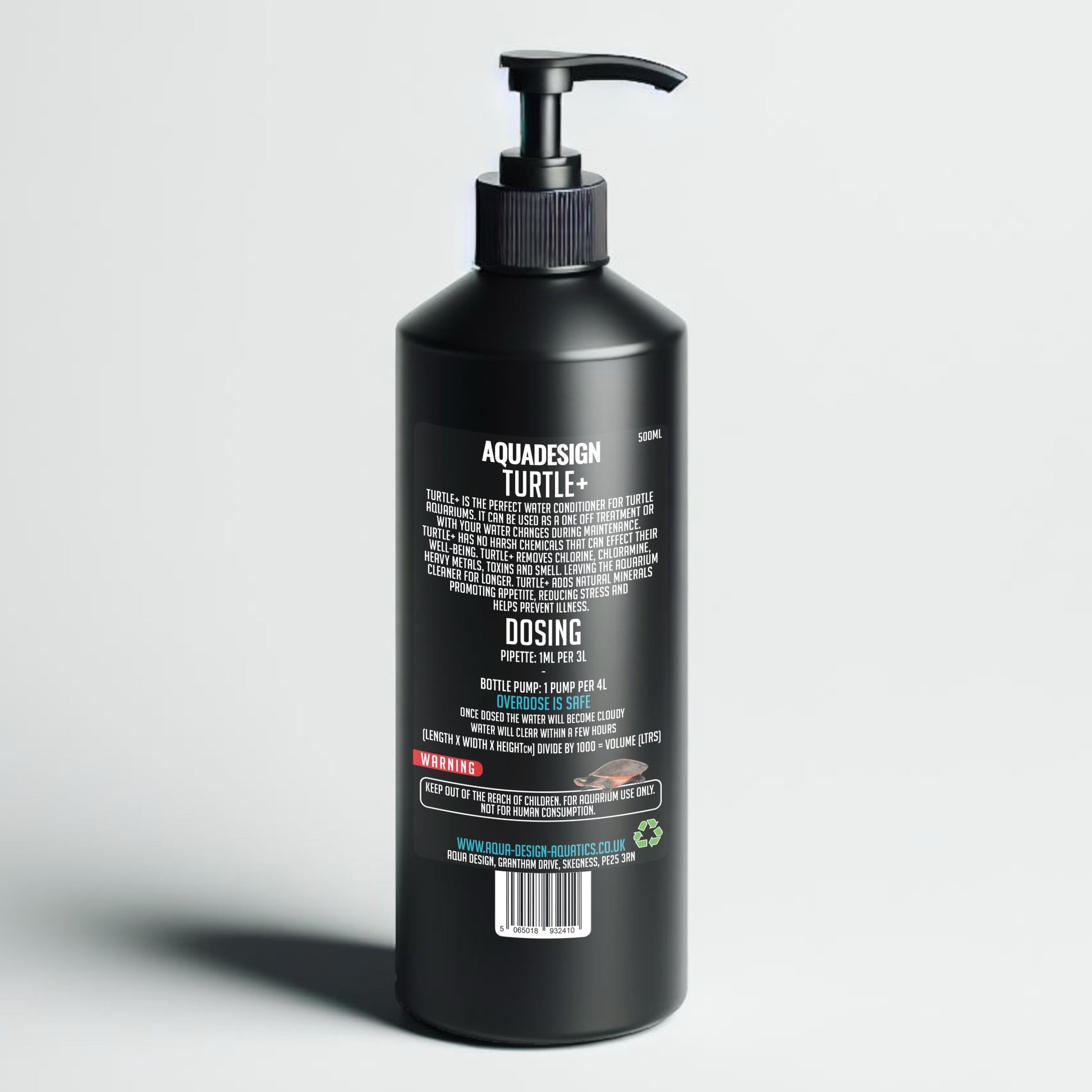 TURTLE+ is the perfect conditioner for turtle aquariums. It can be used as a one off treatment or with your water change and maintenance. TURTLE+ is a 100% natural conditioner that has no harsh chemicals that can effect their wellbeing. Turtles being messy pets produce a lot of waste. TURTLE+ effectively removes smells from the water as well as keeping the water clearer for longer, removing toxins whist adding minerals to the water. TURTLE+ also removes chlorine, chloramine and heavy metals from tap water. TURTLE+ reduces stress, illness and promotes appetite. This product has an unlimited shelf-life.