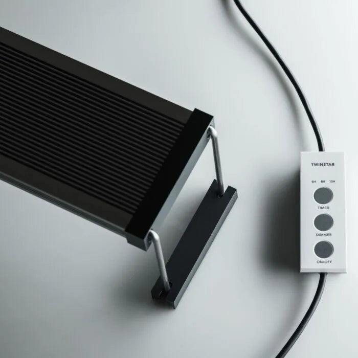 The Twinstar Body is a well machined aluminium body which has fins on the side to allow for excellent heat dissipation. This in turn results in a longer lifespan on the LED diodes, Up to 30,000 Hours. The design is sleek and modern removing distractions from your aquascape placed below the light.